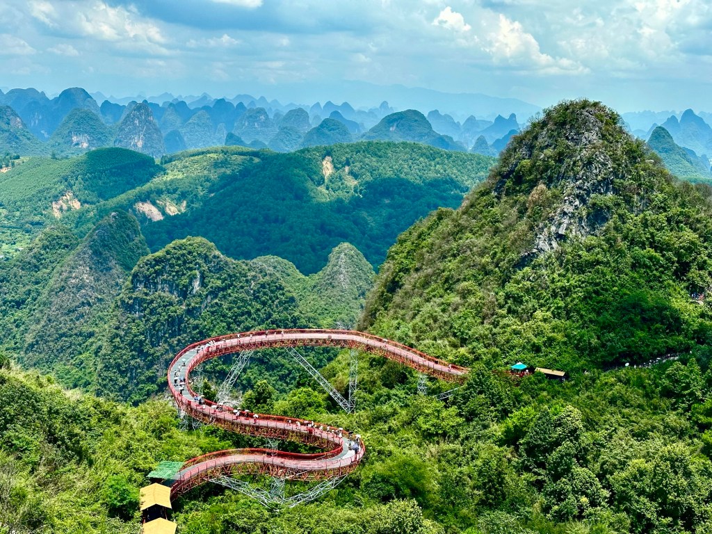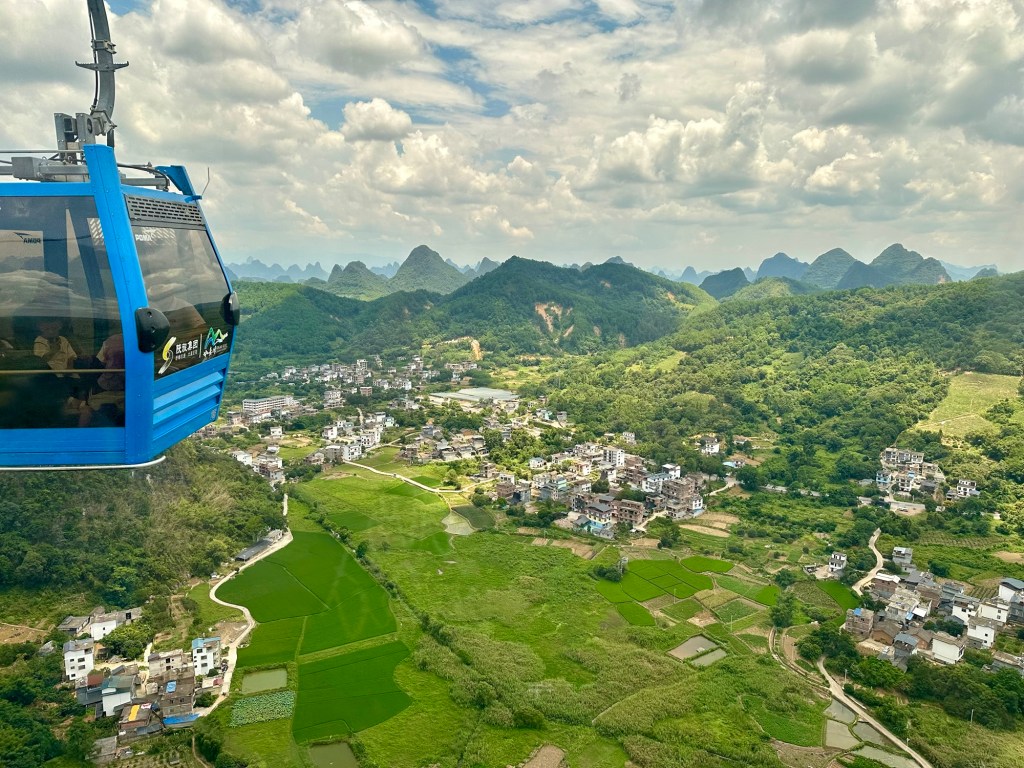 - Ruyi Peak Scenic Area – You access via a gondola then walk around red painted bridge, stairs and platform to give you a 360C view of the karst pic. You can even try the “glass bridge”. (Ticket was 211 CNY/pax ~38$)