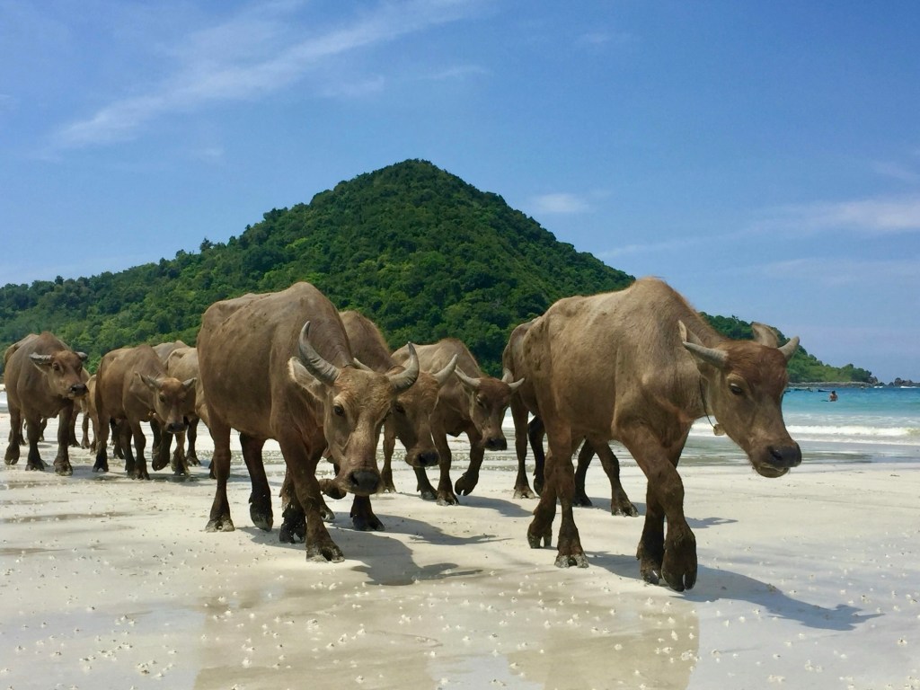 But what makes this beach truly special? The buffalo. Yep, you read that right. Almost daily, local farmers guide their water buffalo across the beach, right along the shoreline. Watching a slow-moving line of buffalo saunter past turquoise waves at sunset is one of those magical, only-in-Lombok moments.